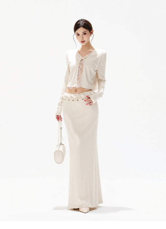 LACE PATCHWORK KNITTED SLIM ONE-PIECE