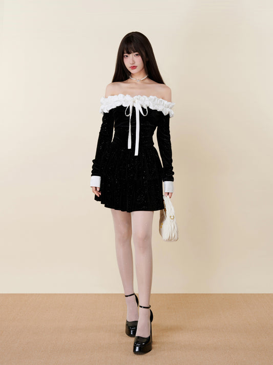 OFF-SHOULDER RIBBON TIGHT MINI DRESS