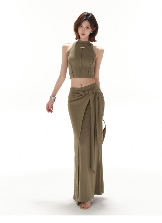 HALTERNECK KNITTED HIP-COVERING SHORT SKIRT