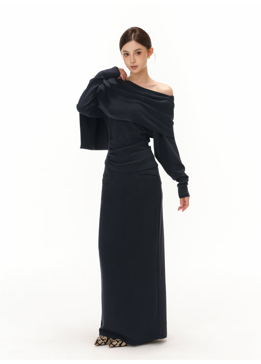 LAZY STYLE OFF-SHOULDER CAPE DRESS