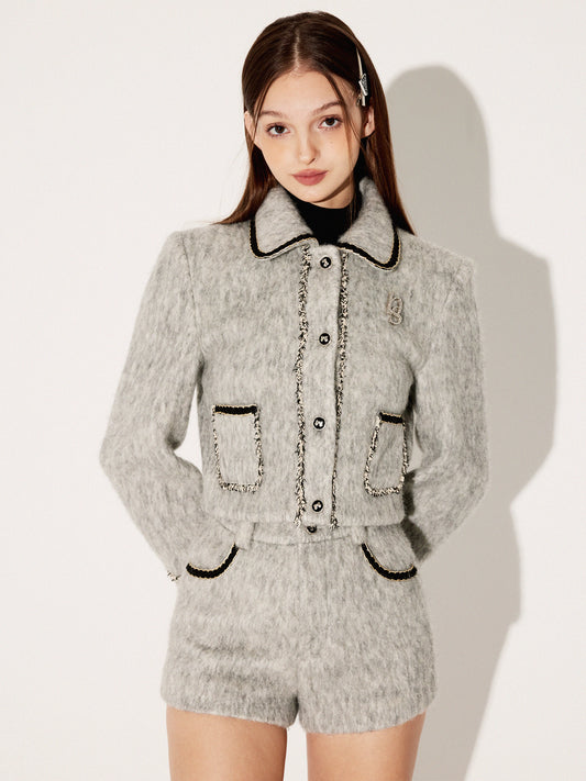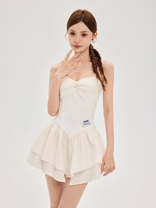 HALTER-NECK TWEED HIP-COVERING ONE PIECE