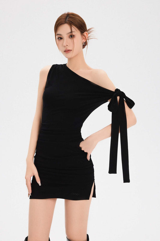 OFF-SHOULDER RIBBON TIGHT MINI DRESS