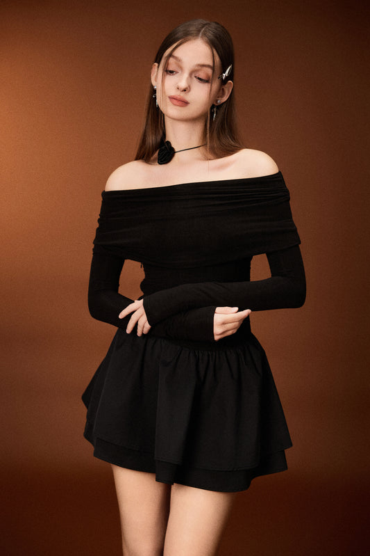 MODERN BRITISH STYLE OFF SHOULDER DRESS