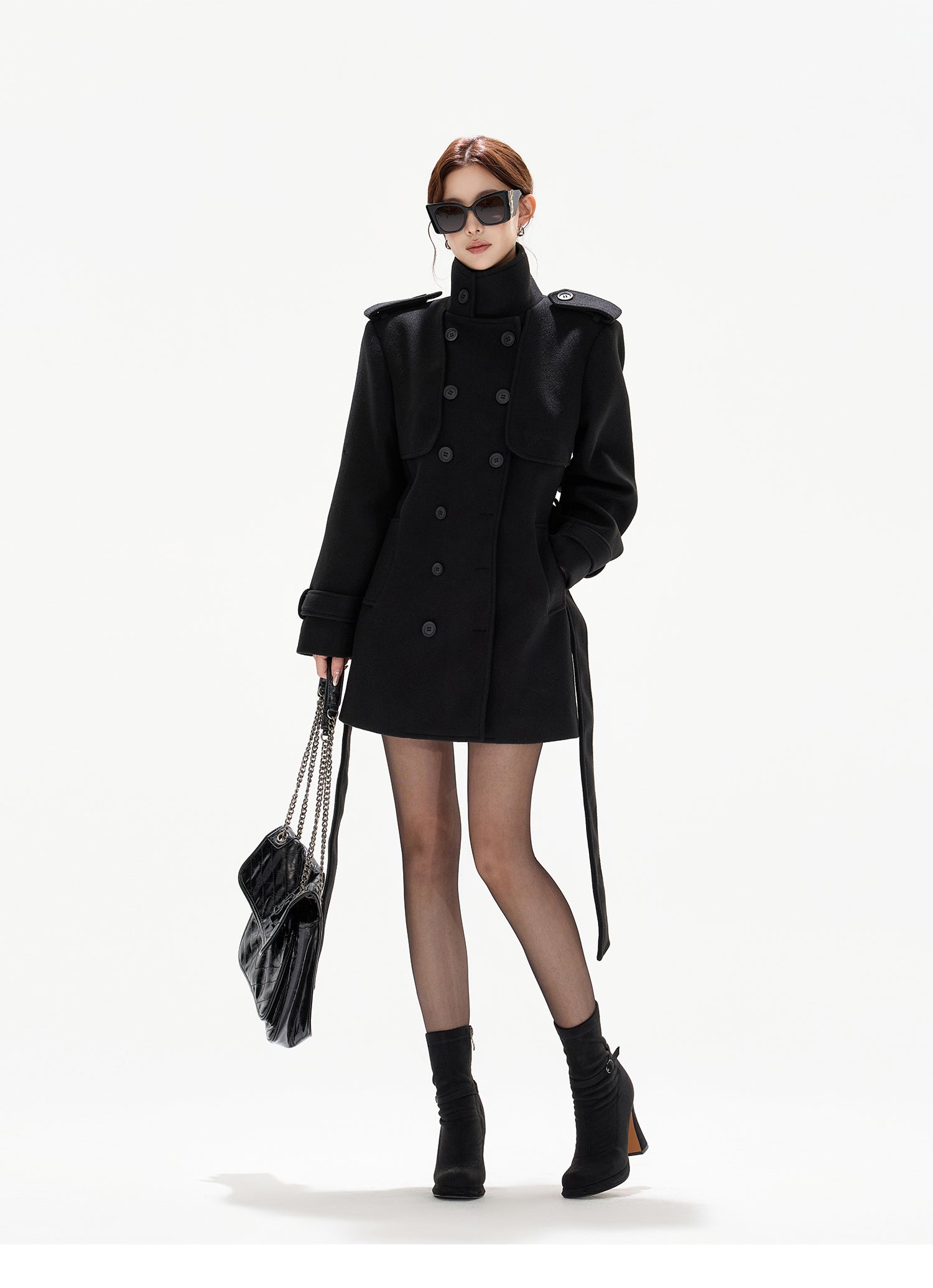 上質なウール素材を使用した、オリジナルデザインのダブルブレストロングコート。程よくゆとりのあるシルエットが体のラインを拾いすぎず、自然に華奢見えを叶えます。フロントはクラシカルなダブルボタン仕様で、きちんと感とモードな雰囲気を両立。首元には取り外し可能な囲みカラー(ネックディテール)をあしらい、スタイリングに奥行きをプラスしました。付属のウエストベルトでシルエット調整も可能なため、ラフにもフェミニンにも着こなし自在。ミドル丈のバランスは、パンツ·スカート問わず合わせやすく、デイリーからきれいめシーンまで幅広く活躍する一着です。