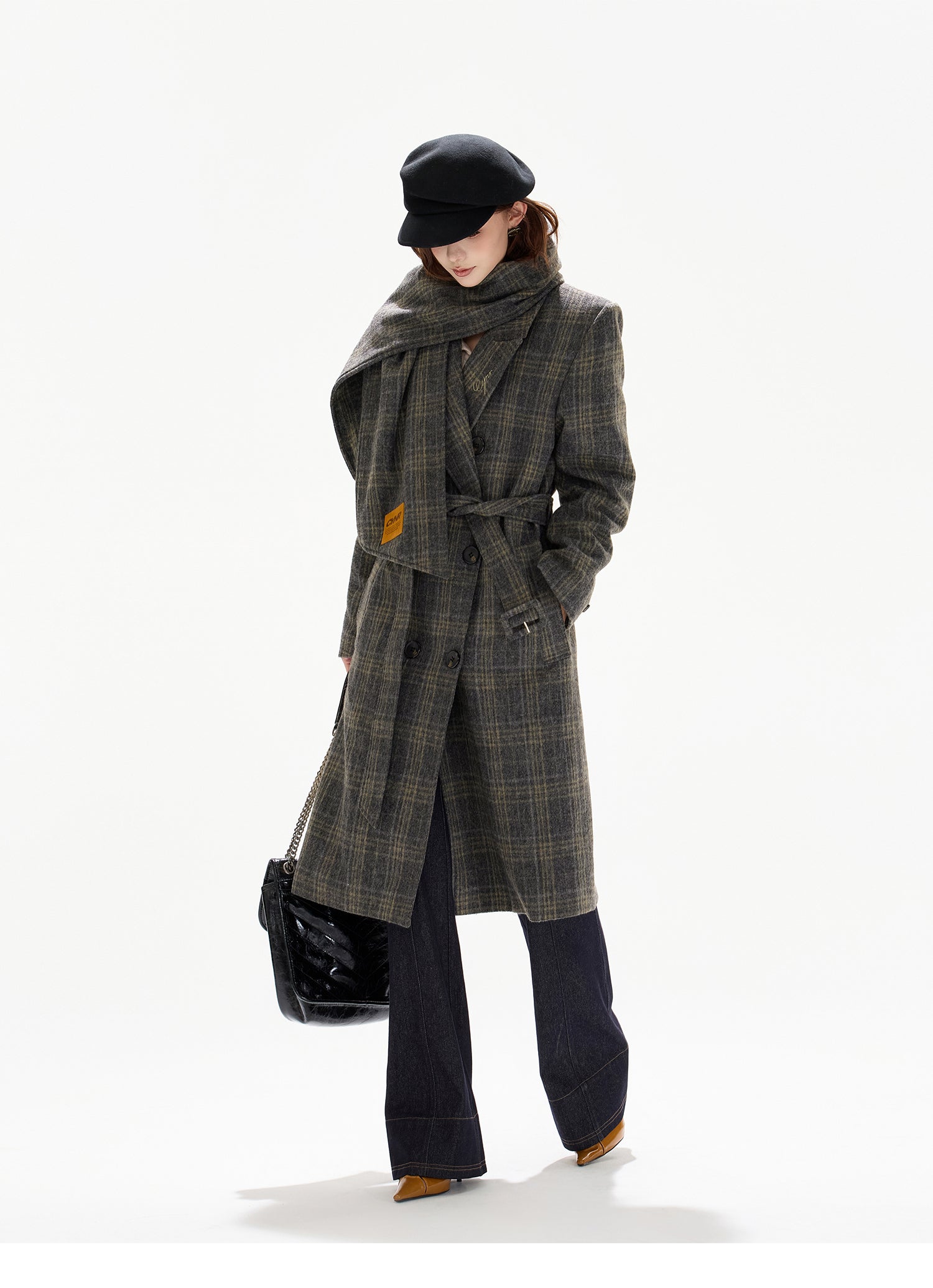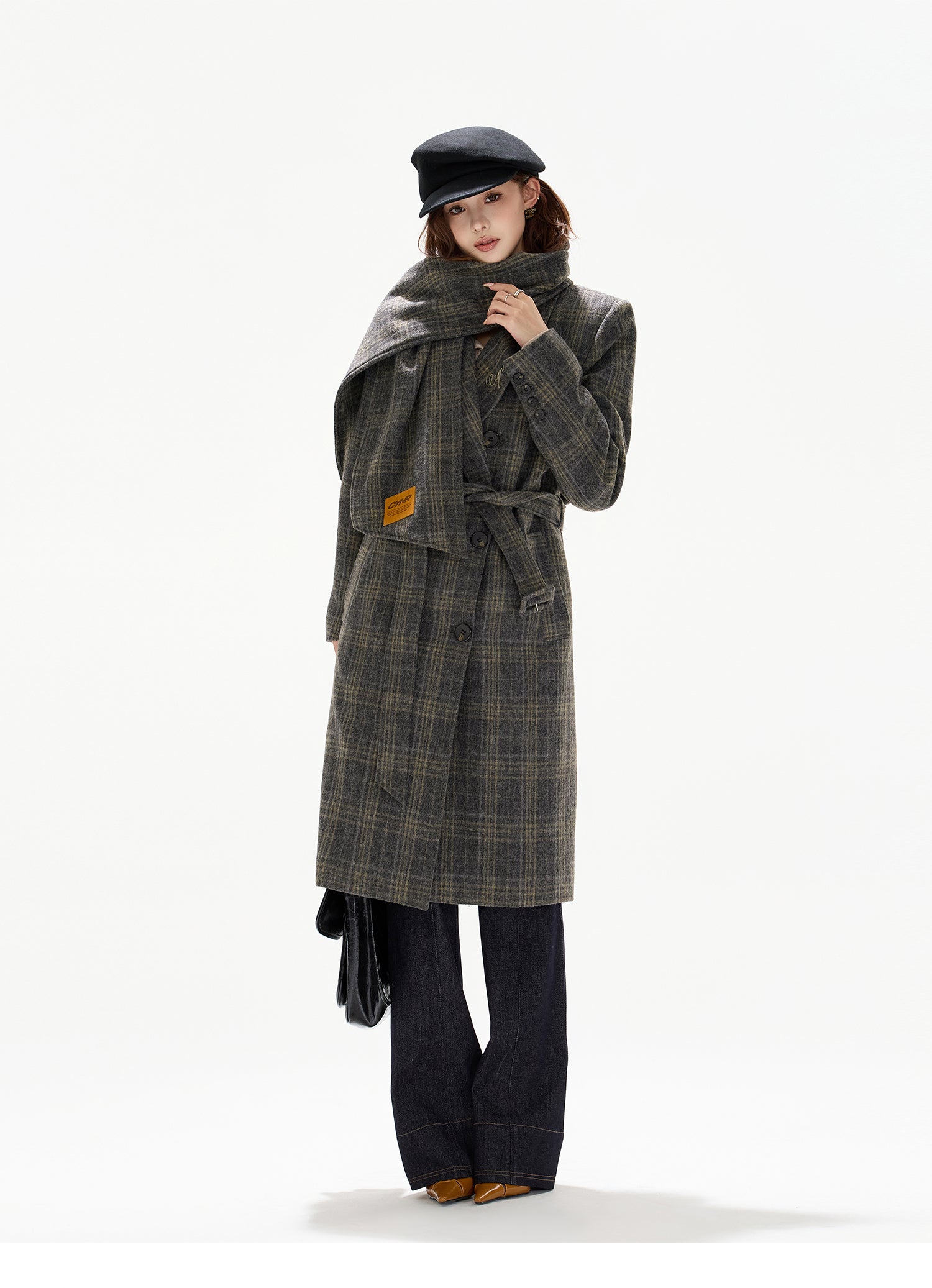 BRITISH-STYLE DETACHABLE-SCARF WOOL OVERCOAT
