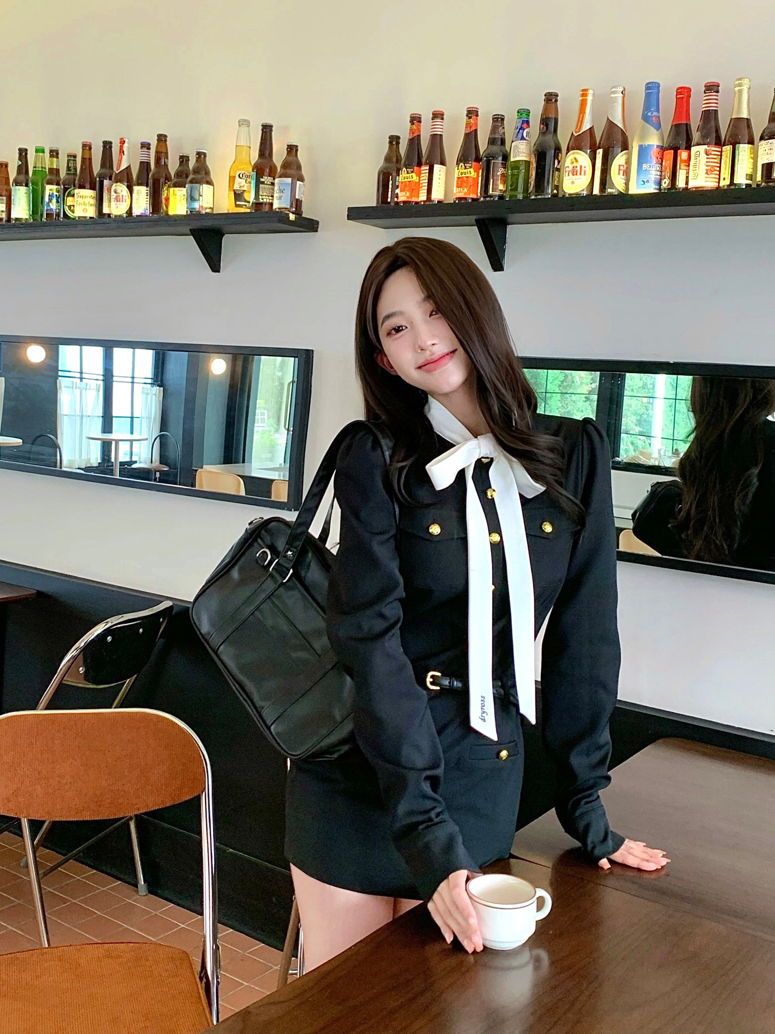 上品なお嬢様風ワンピース。クラシカルなデザインにリボン付きのウエストマークでスタイルアップを叶え、長袖が腕をすっきりと見せてくれます。シックなブラックカラーは高級感があり、デイリーのお出かけから特別なシーンまで幅広く活躍。まるでお嬢様のような華やかさを演出してくれる一着です。