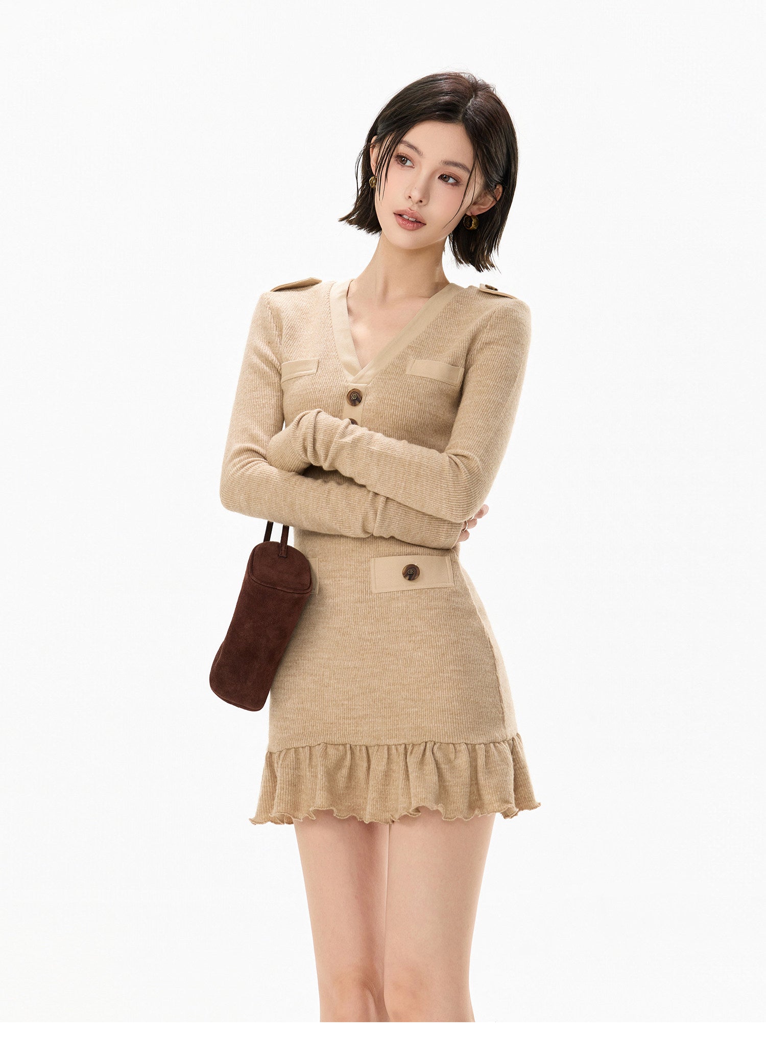 オリジナルデザインの、清楚で凛としたムードを纏うニットミニワンピース。取り外し可能なファーカラーと、ふんわりとしたファー袖口が上品なアクセントに。ボディラインにほどよく沿うシルエットで、着るだけで自然に細見えを叶える一着です。カラーはブラウンとカーキの2色展開。落ち着いたニュアンスカラーで、大人の“クールなお嬢様”スタイルを演出します。