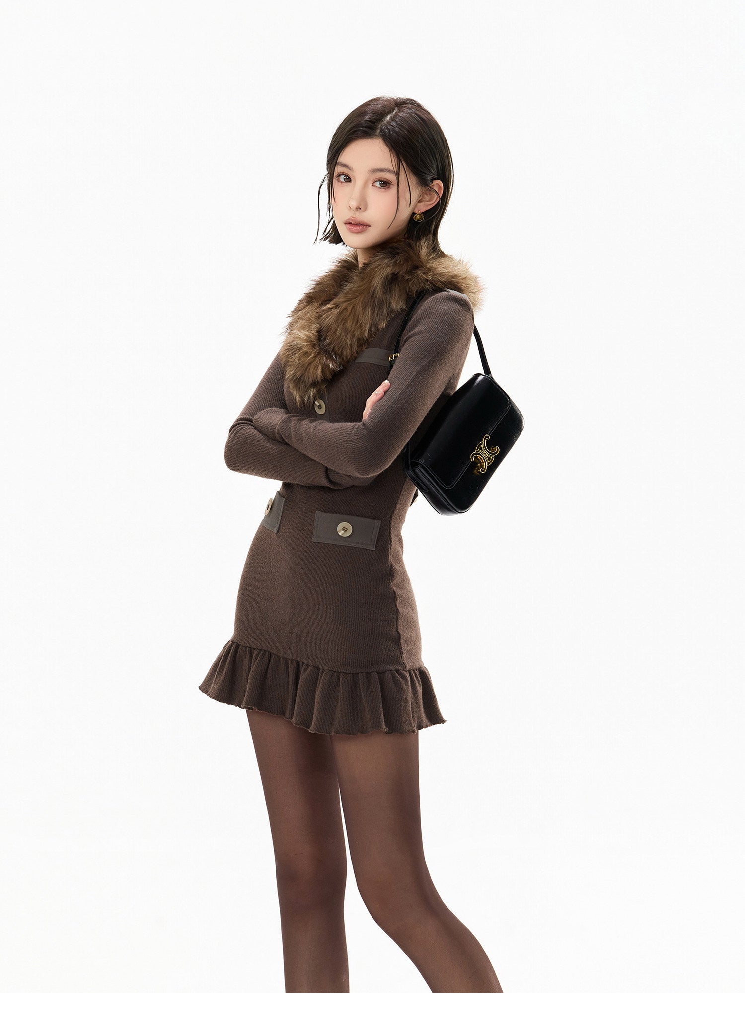 DETACHABLE FUR KNIT MINI DRESS