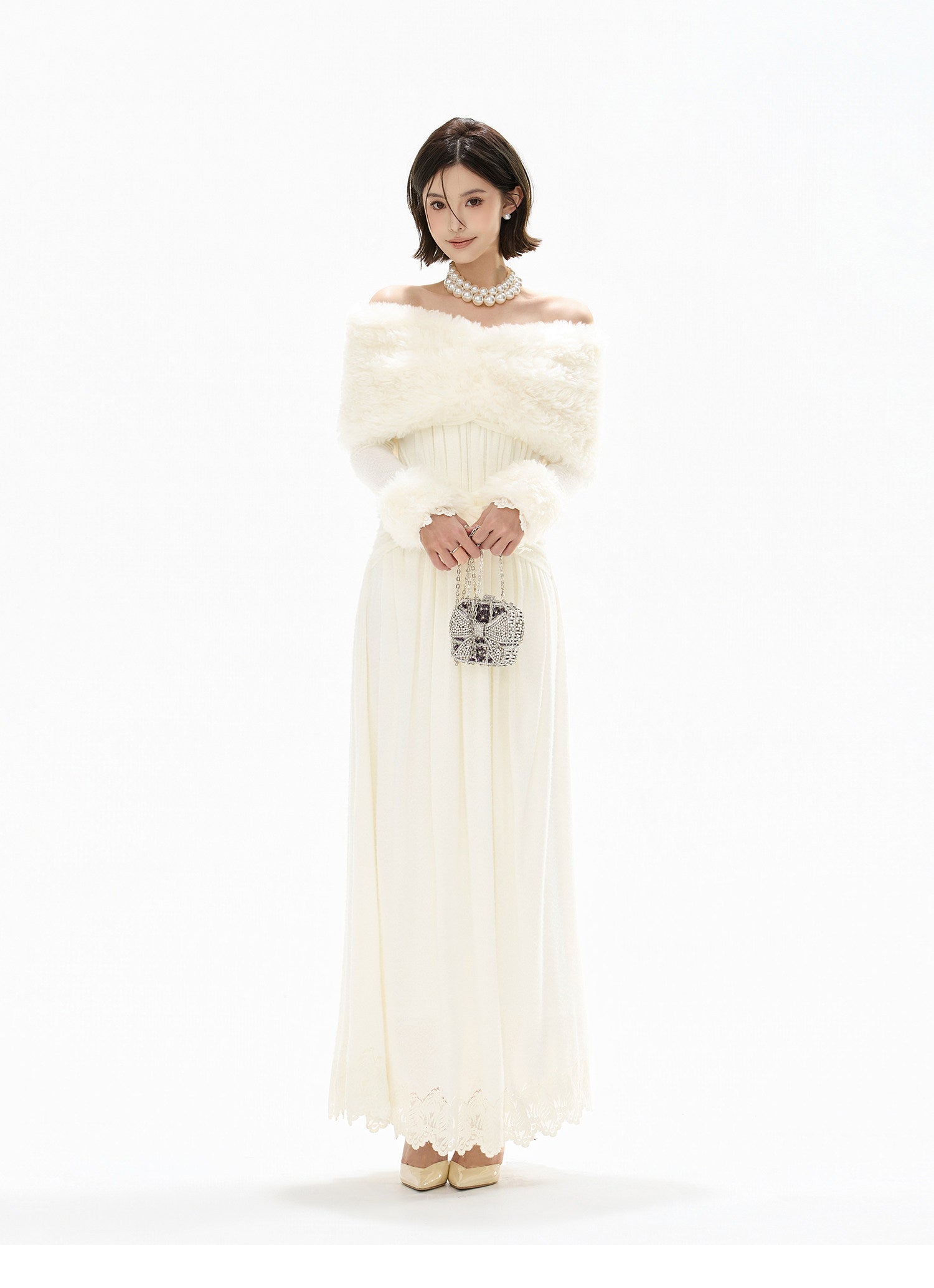 DETACHABLE FUR OFF-SHOULDER GOWN
