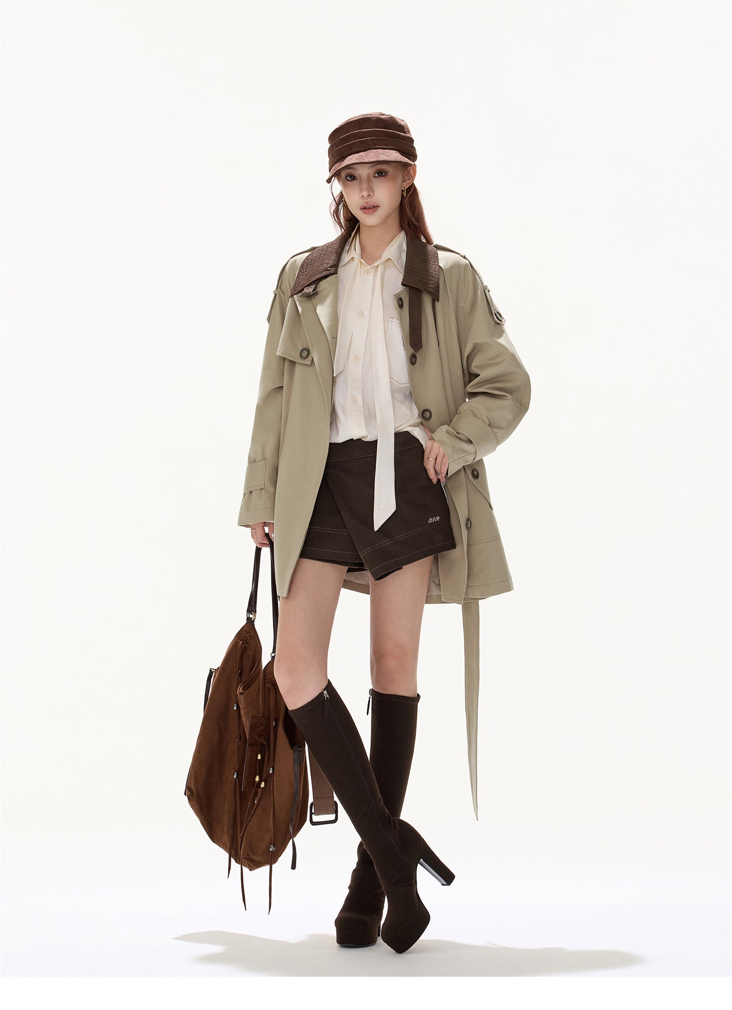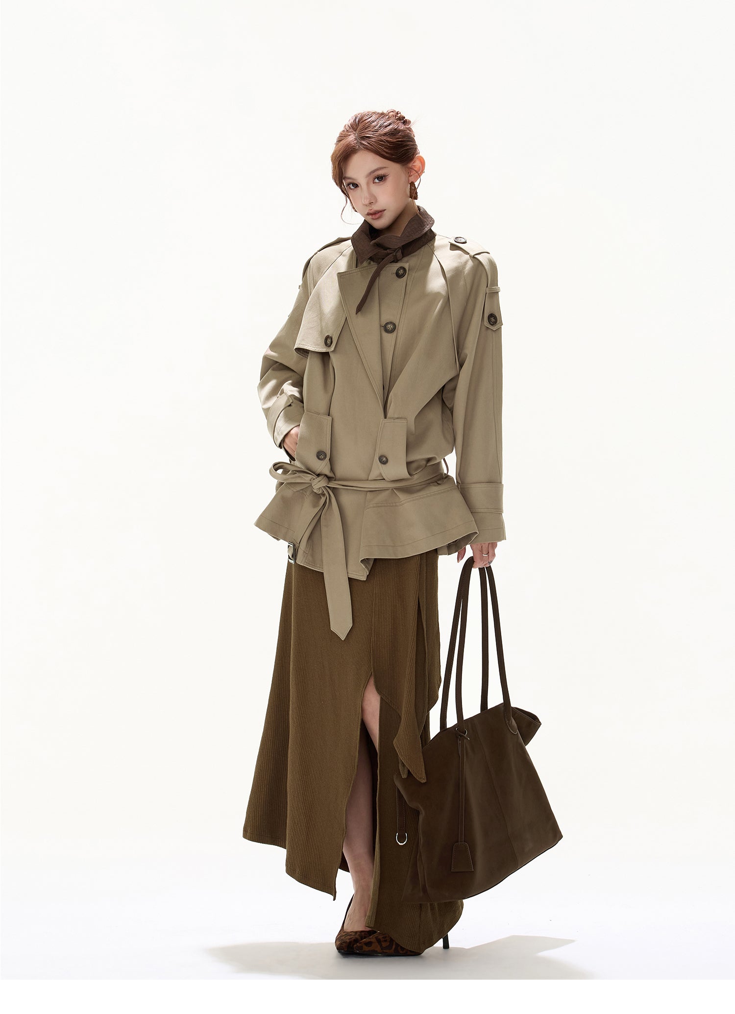 ミドルロング丈は、パンツにもスカートにも相性抜群。ナチュラルなカーキカラーがどんなスタイルにも溶け込み、デイリーから通勤まで幅広く活躍する一着です。