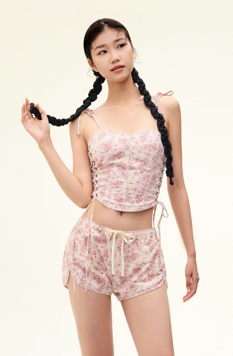 高品質なコットン素材を使用し、ハリ感と通気性を兼ね備えた快適な着心地を実現。耐久性にも優れており、柔らかさもキープしています。プリントには上質なコットン用染料を用い、繊細で奥行きのある柄を表現しながら、コットンならではのナチュラルな風合いをしっかりと残しています。製品洗い加工によってプリントの色合いを柔らかく仕上げ、肌馴染みの良いトーンに。さらに、ヴィンテージライクな雰囲気を引き立てるナチュラルなクラッシュ加工もポイントです。同シリーズで、トレンド感たっぷりのローウエストショートパンツやパラシュートパンツも展開中。