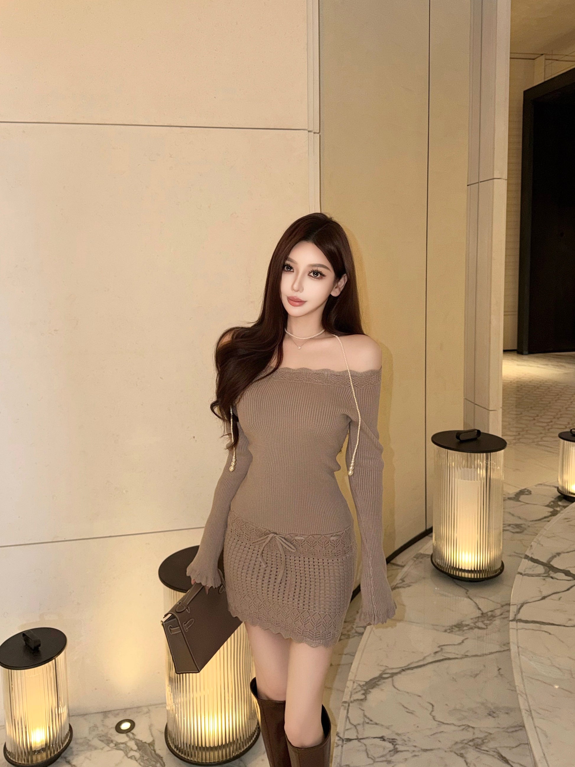 フレンチムード漂うオフショルダーデザインが印象的な、長袖ニットドレス。デコルテ部分のさりげないカットアウトが、上品さを保ちながら女性らしい色気を引き立てます。ウエストラインを美しく見せる設計と、ボディラインに程よく沿うシルエットで、スタイルアップ効果も。柔らかく伸縮性のあるニット素材を使用しているため、着心地も快適。