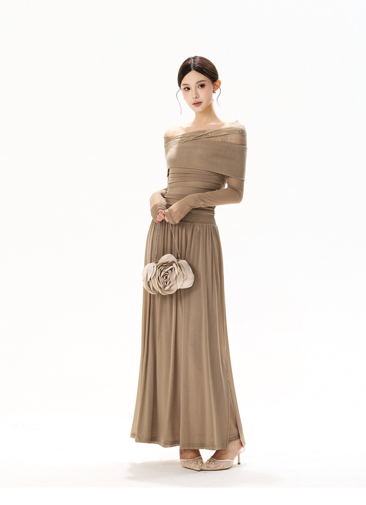 ウエストラインは立体的にシェイプ設計されており、自然なくびれを強調しながらスタイルアップを叶えます;裾に向かってふんわりと広がるロングシルエットが優雅な動きを生み、歩くたびに軽やかな余韻を残します、特別なお出かけから記念日シーンまで、上品さと華やかさを兼ね備えた一着です。