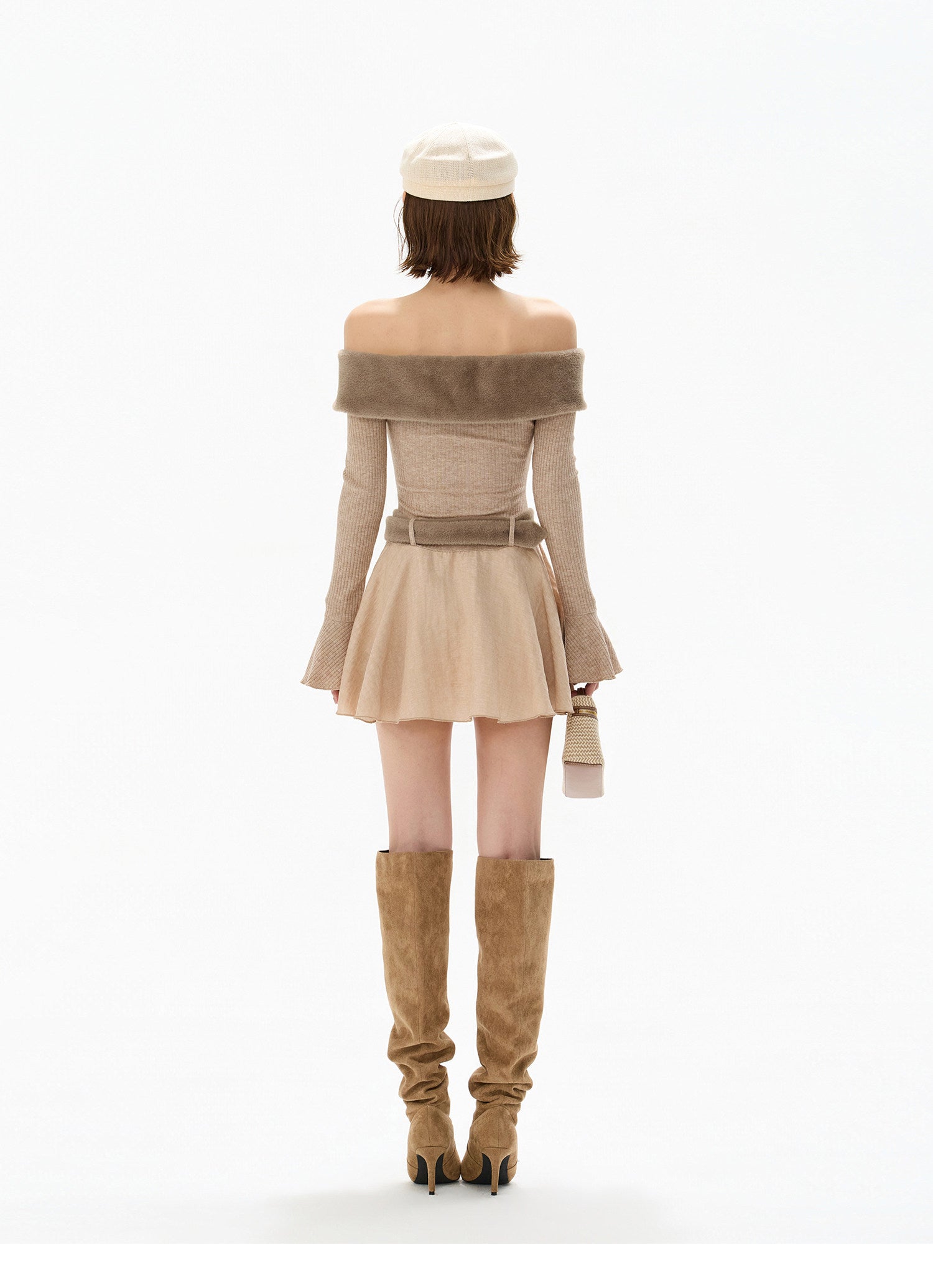 エコファーの柔らかな質感が印象的な、ヴィンテージムード漂うニットドレス。デコルテを美しく魅せるオフショルデザインと、ウエストを引き締めるAラインシルエットで、自然なスタイルアップを叶えます。程よい厚みのニット素材で、ボディラインを拾いすぎず上品な着心地。お嬢様の気品と可愛らしさを兼ね備えた一着です。デートからお出かけまで、主役として活躍するドレス。
