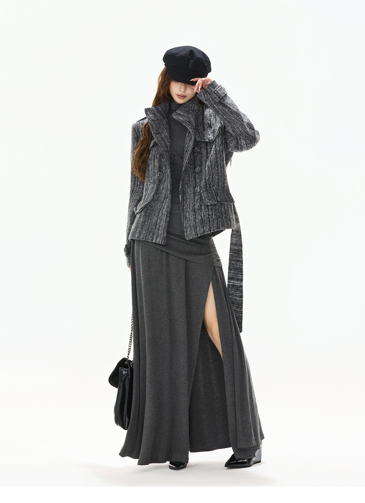 ダブルブレスト仕様と共布ベルトの組み合わせが、クラシカルで洗練された印象を演出します。ウール混の起毛感ある素材は、見た目にも暖かく、秋冬シーズンに最適。ウエストを程よくマークすることで、自然にスタイルアップが叶い、羽織るだけで女性らしいシルエットに。オンオフ問わず活躍し、通勤からお出かけまで幅広いシーンで着用できる一着です。